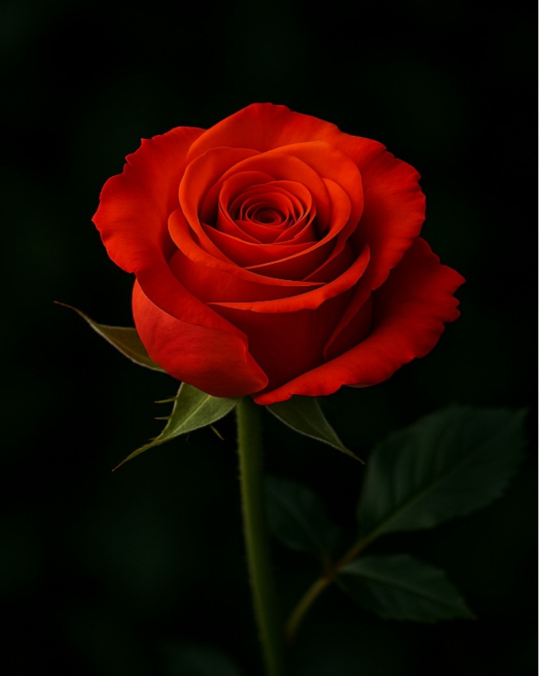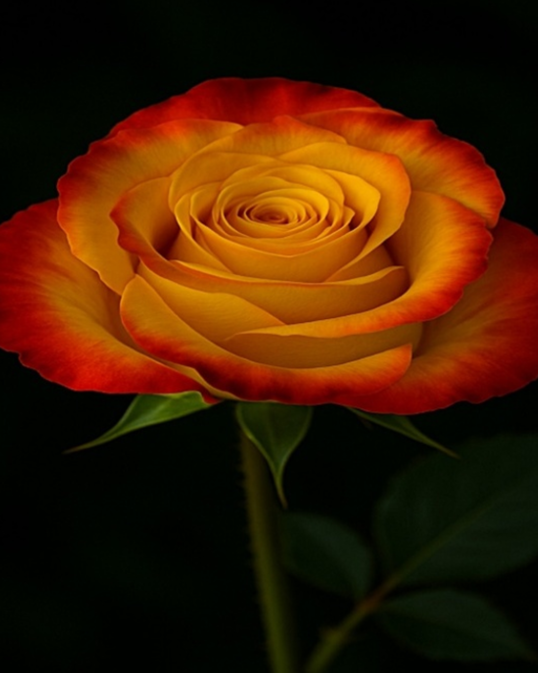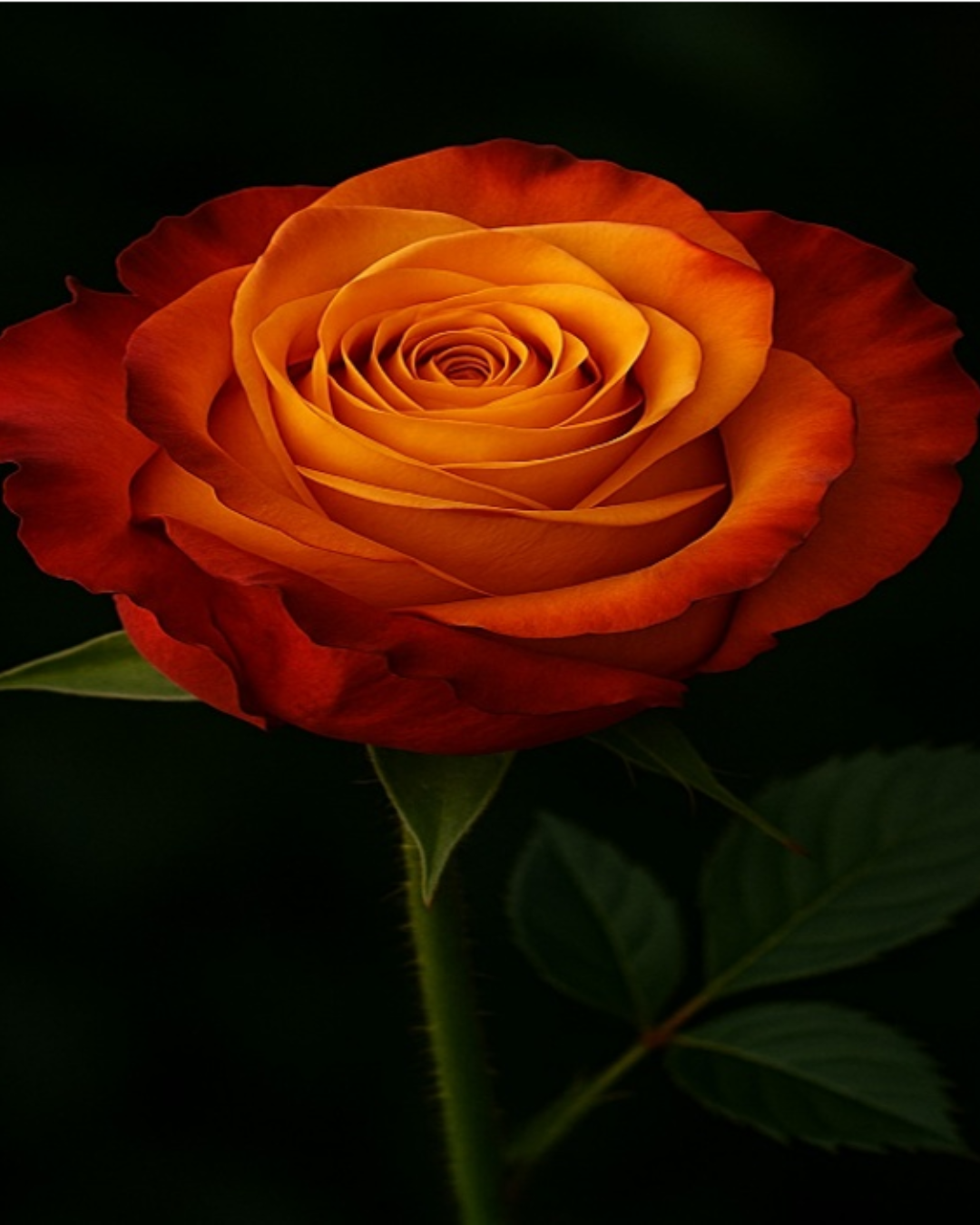 The 3D Rose (Rosa ‘3D’) is a striking and intense bicolor variety, distinguished by its bright orange center that fades into a vivid red edge. Its spiraled form, with perfectly defined velvety petals, creates a deep and vibrant visual effect—hence its name, “3D.”