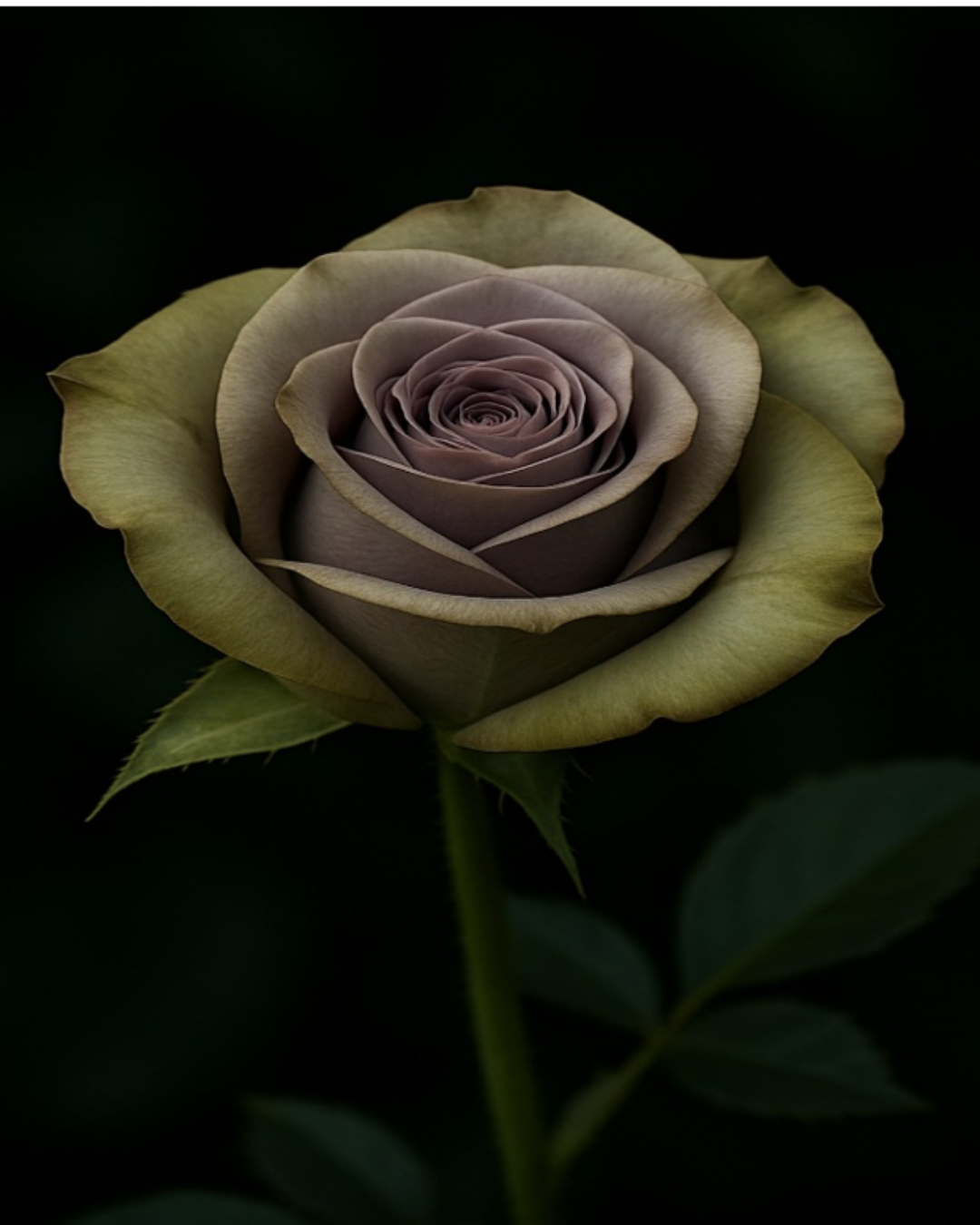 The Amnesia Rose (Rosa ‘Amnesia’) is one of the most exclusive and enigmatic varieties within the lavender category. Its most distinctive feature is the unique hue of its petals, combining soft lavender with velvety gray and green undertones, giving it an almost mystical and iridescent appearance.