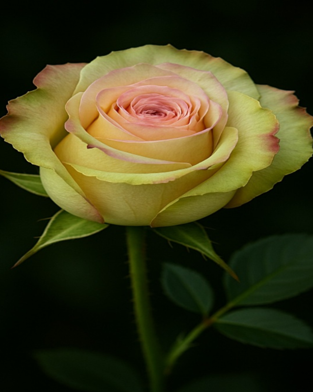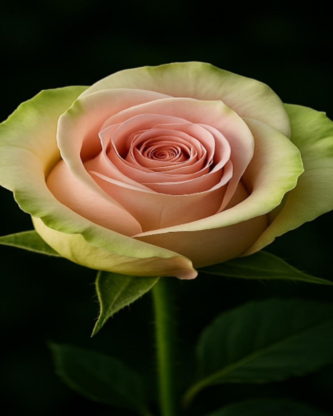 The Esperance Rose (Rosa ‘Esperance’) is one of the most delicate and sophisticated bicolor varieties, recognized for the harmonious blend of cream, soft pink, and green tones within each petal. Its perfect spiral begins with a pale pink center that opens toward a green and ivory edge, creating a unique and fresh effect.