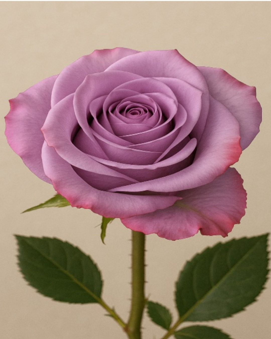 The Ocean Song Rose (Rosa ‘Ocean Song’) is a premium variety, known for its soft lavender hue with silvery and lilac undertones, giving it an ethereal and elegant appearance. Its petals open in a spiraled formation, conveying serenity and sophistication.