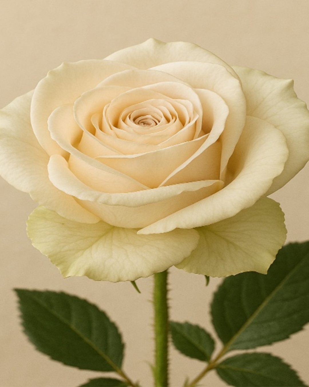 The Vendela Rose (Rosa ‘Vendela’) is one of the most elegant and refined varieties, known for its velvety petals in ivory tones with a delicate cream hue that deepens toward the center. Its perfectly spiraled shape and long-lasting durability make it a favorite for weddings, luxury arrangements, and sophisticated floral designs.
