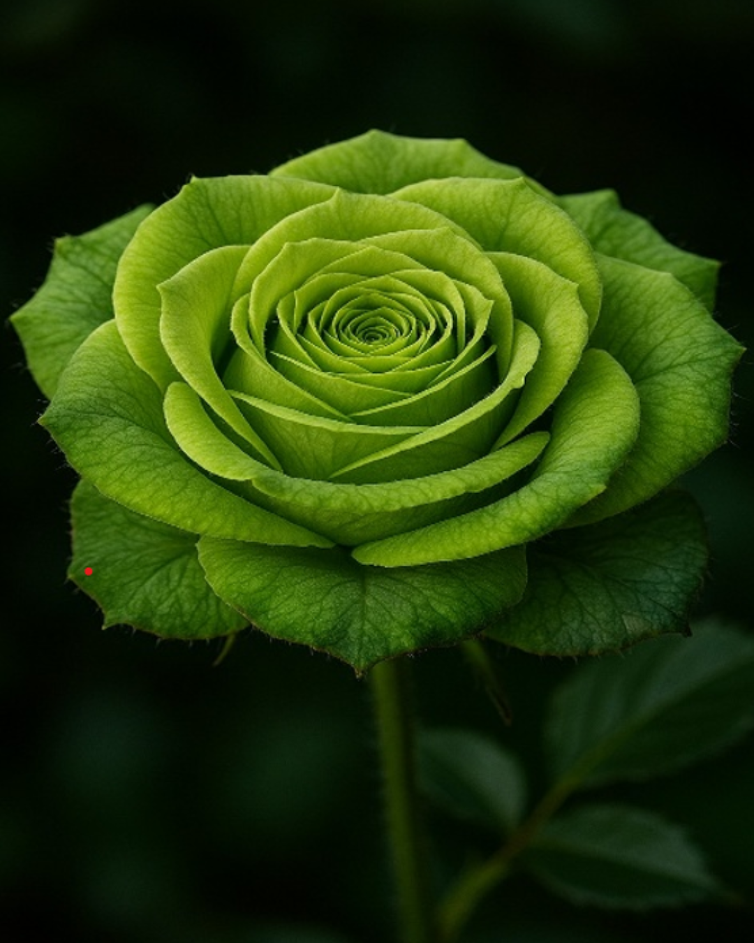 The Wasabi Rose (Rosa ‘Wasabi’) Is an exclusive and highly prized variety, renowned for its unusual bright lime green hue that sets it apart from traditional roses. Its petals are arranged in a perfect spiral, with a velvety texture and a subtle gradient toward darker edges, creating a hypnotic and elegant visual effect.