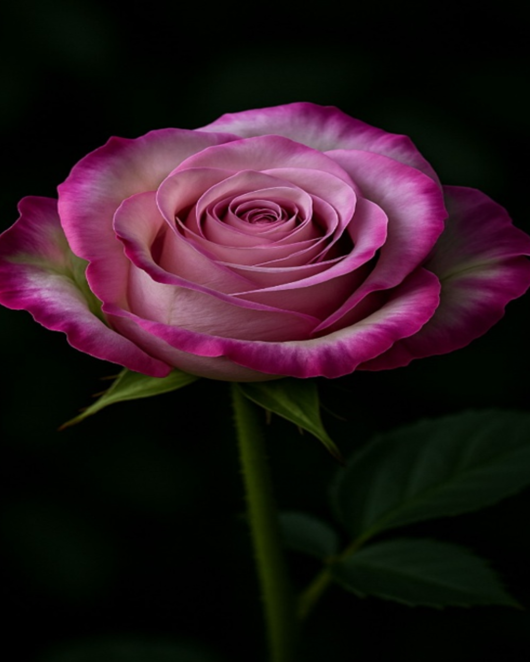 The Rosita Vendela Rose (Rosa ‘Rosita Vendela’) is a delicate and sophisticated bicolor variety, distinguished by its soft pink center petals, surrounded by an intense fuchsia edge that stands out against a cream or ivory-white background. This color transition gives it a romantic and refined appearance.